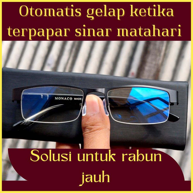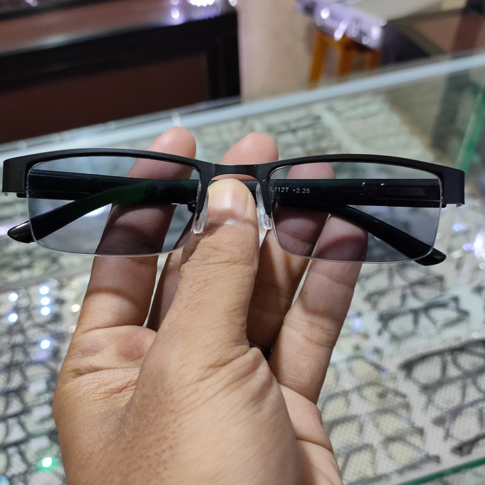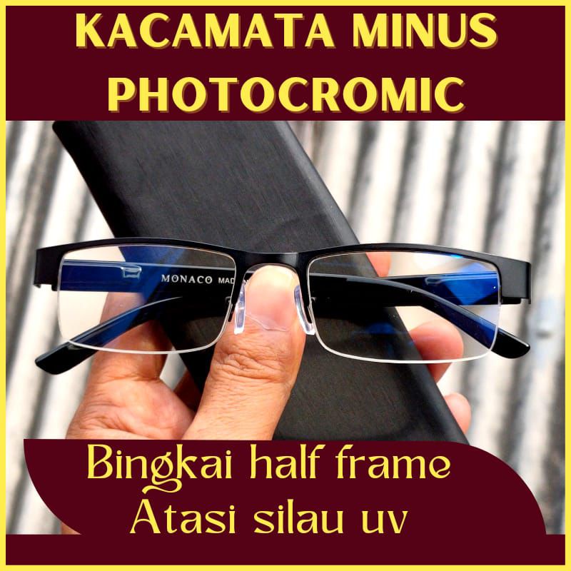 Kacamata Minus Potocromic Pria Keren Half Frame Gantung Kaca Mata Anti Radiasi Blueray