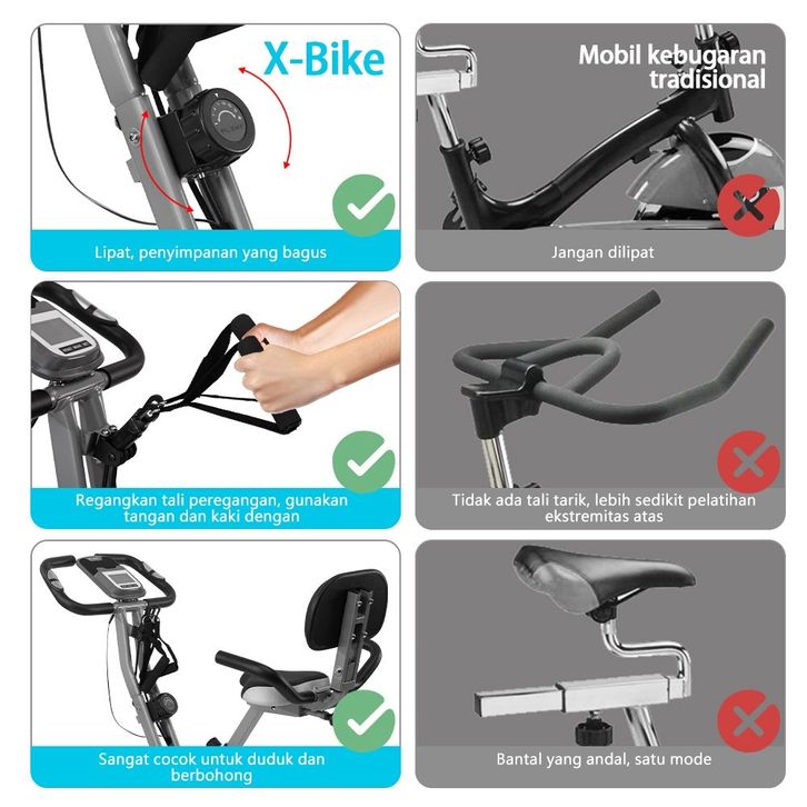 OneTwoFit X-Bike Foldable Exercise Bike With LED Monitor Adjustable Seat Magnetic X-Bike