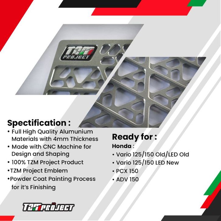 TERLARIS TZM PROJECT COVER RADIATOR TZM PROJECT UNTUK HONDA PCX 150 TRIANGLE SERIES