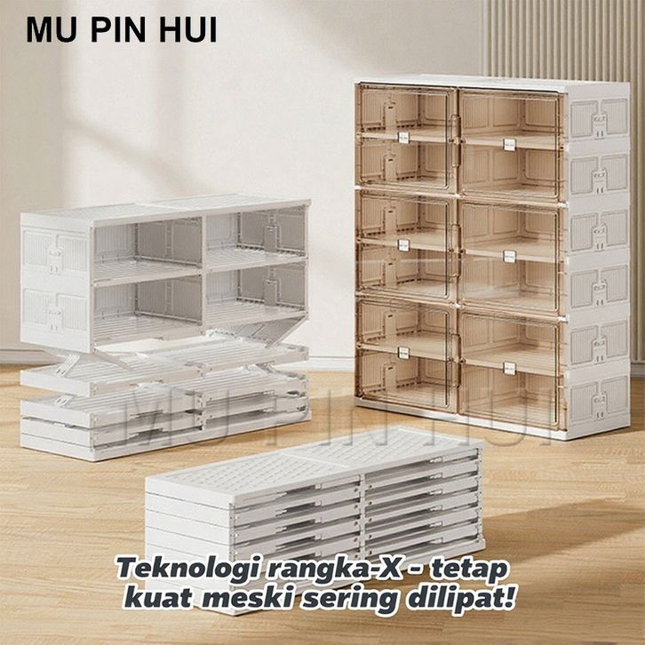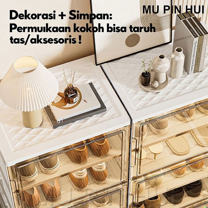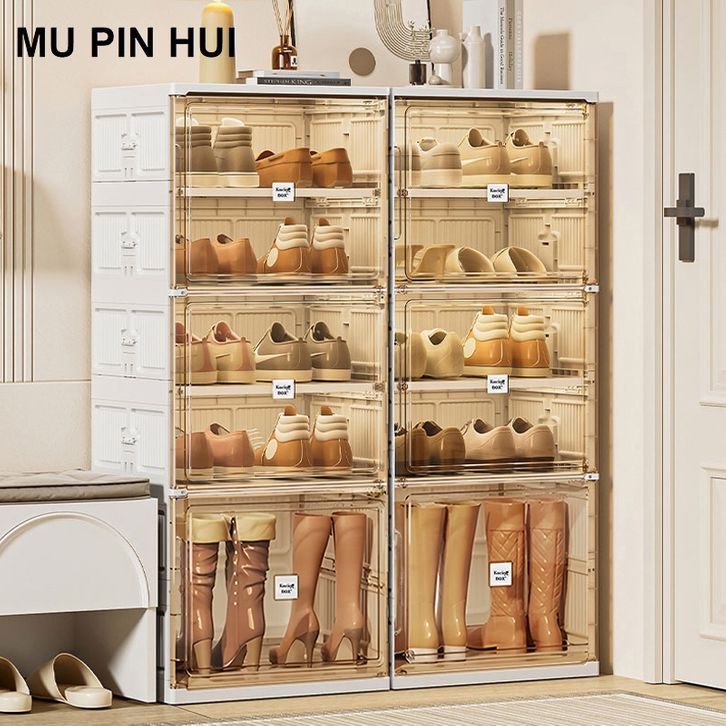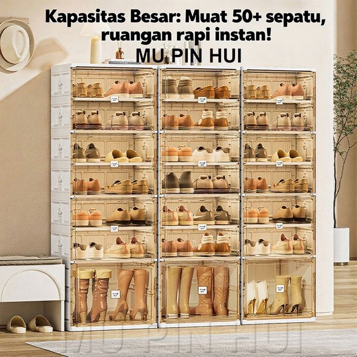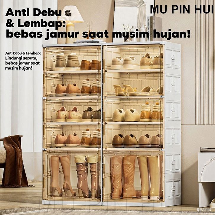 MU PIN HUI Rak Sepatu Tertutup Ready Stock 8- 40 Box Sepatu Lemari Sepatu Minimalis Pintu Transparan Sepatu Lipat Anti