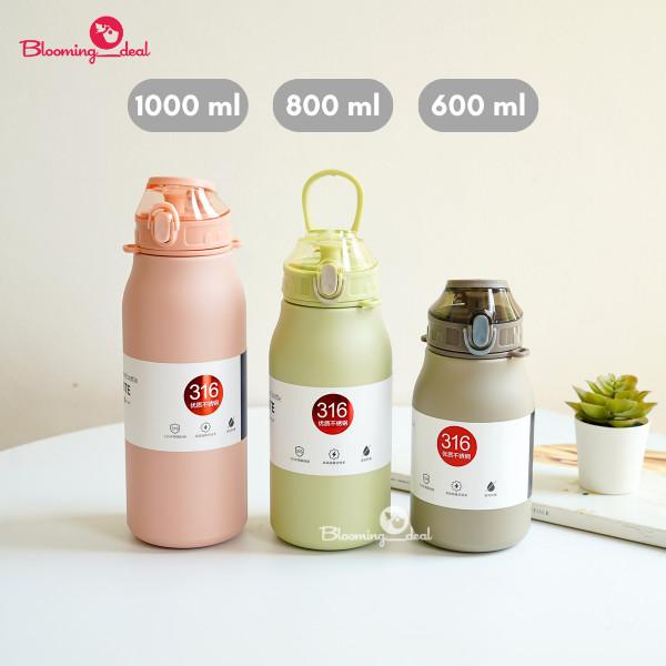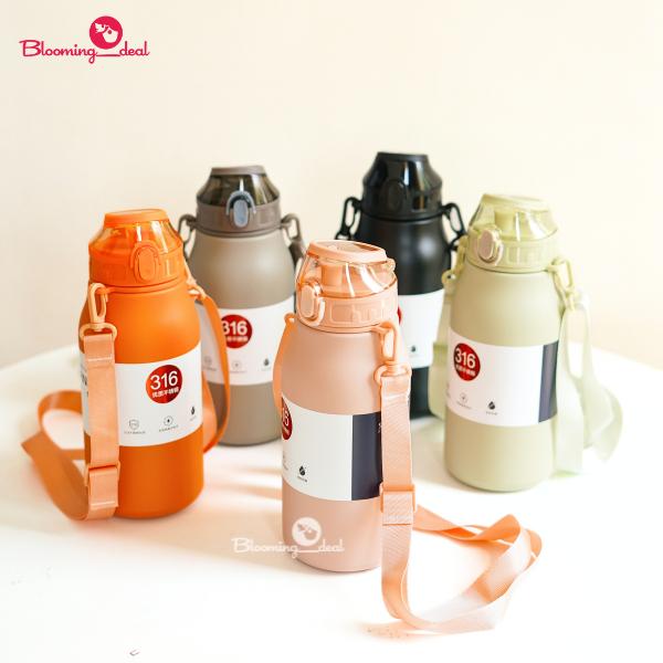 FLASH SALE TUMBLER TERMOS STAINLESS STEEL JUMBO DENGAN GANTUNGAN DAN TALI 6008001000 ML (ST4132) HITAM 800 ML