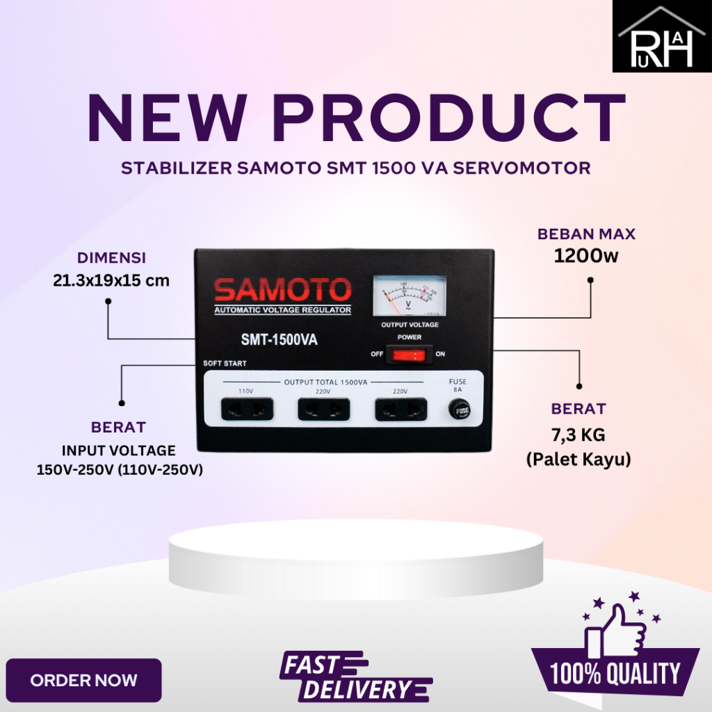 INSTANT - Stabilizer Samoto SMT1500VA 1500VA 1200W Stavolt Servo Motor Rumah Kos Kontrakan