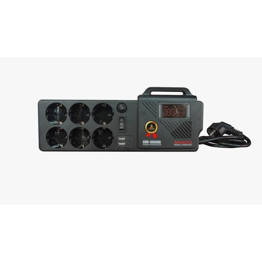 PALET KAYU - GERMAN SOCKET Stabilizer Samoto AVR1000G HITAM Relay 1000VA 800W Garansi 3 Tahun
