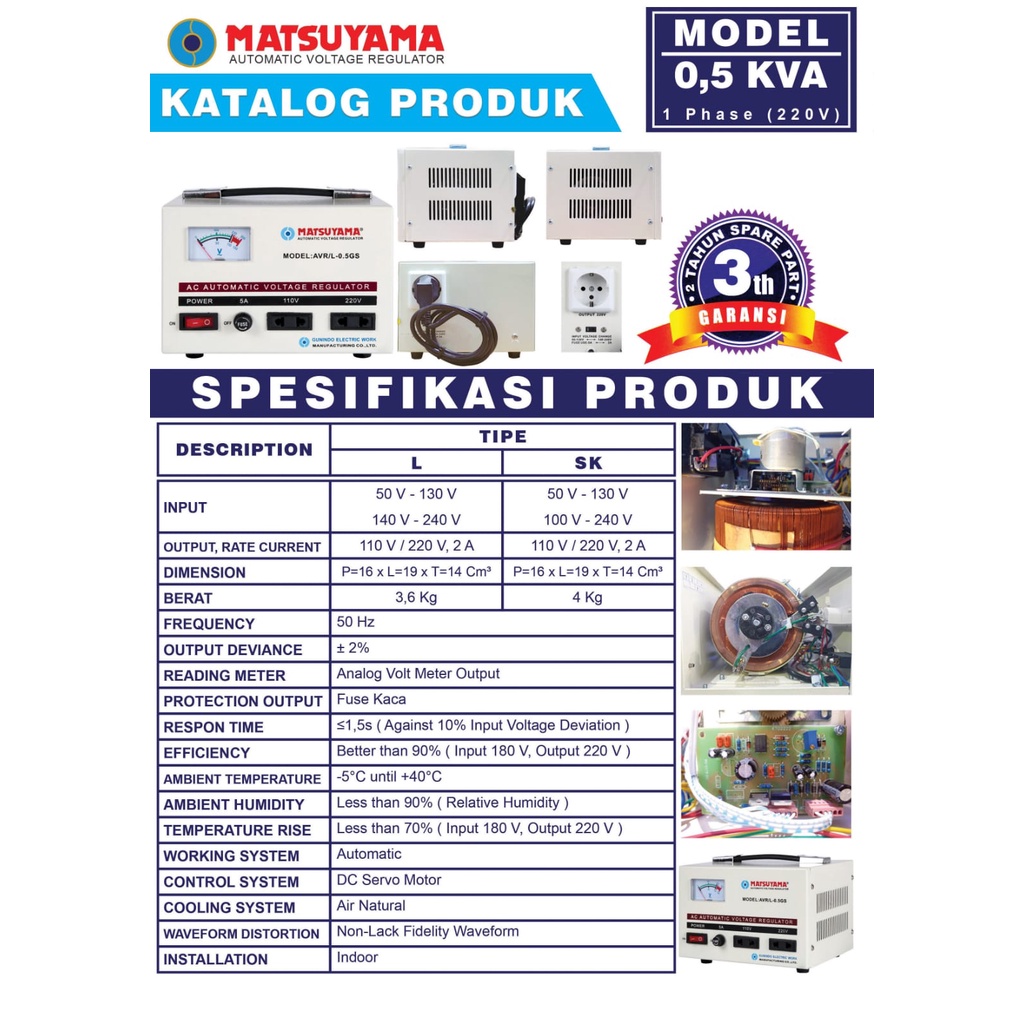 Stabilizer 500 VA Stavol Matsuyama 500VA Voltage 0,5 GS 1PH 0,5 KVA 220v STAVOLT 500VA