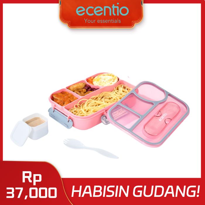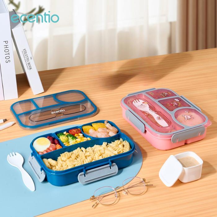 PROMO TERBATAS ECENTIO KOTAK MAKAN 1100ML SET SEKAT 4 STICKER LUNCH BOX BPA FREEBIRU