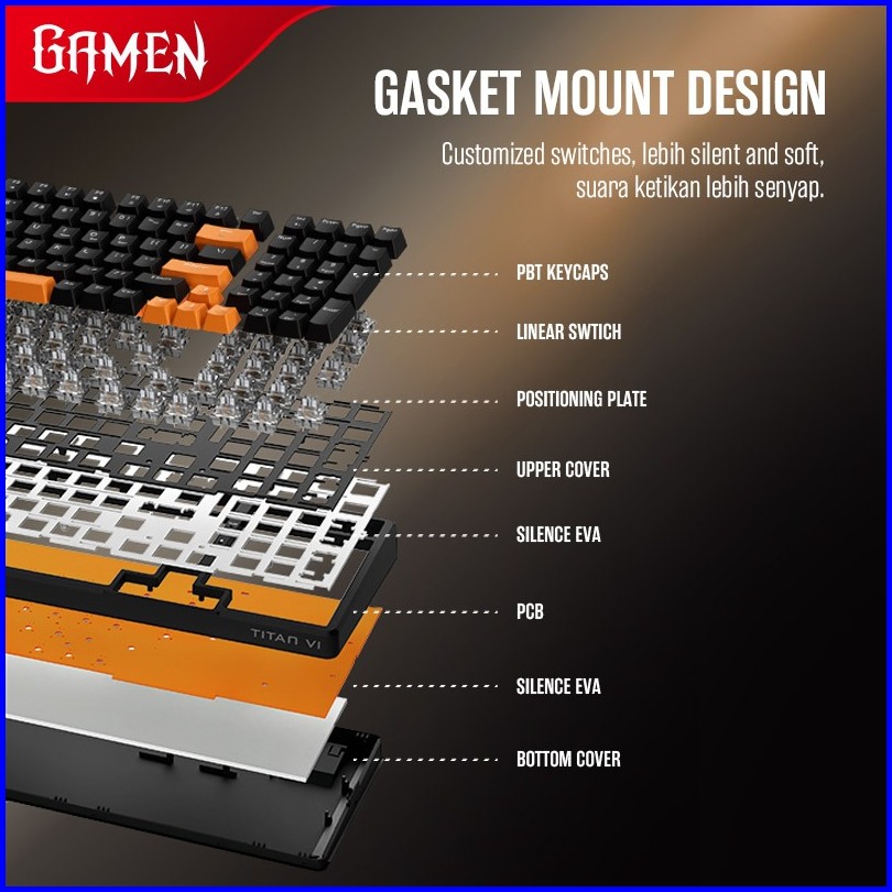 Gamen Keyboard Gaming Mechanical Rgb Gasket Mount Titan 6 Hot-swappable Linear Silver Switch 99 Keys Ergonomic Original