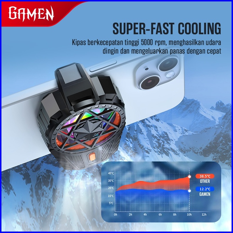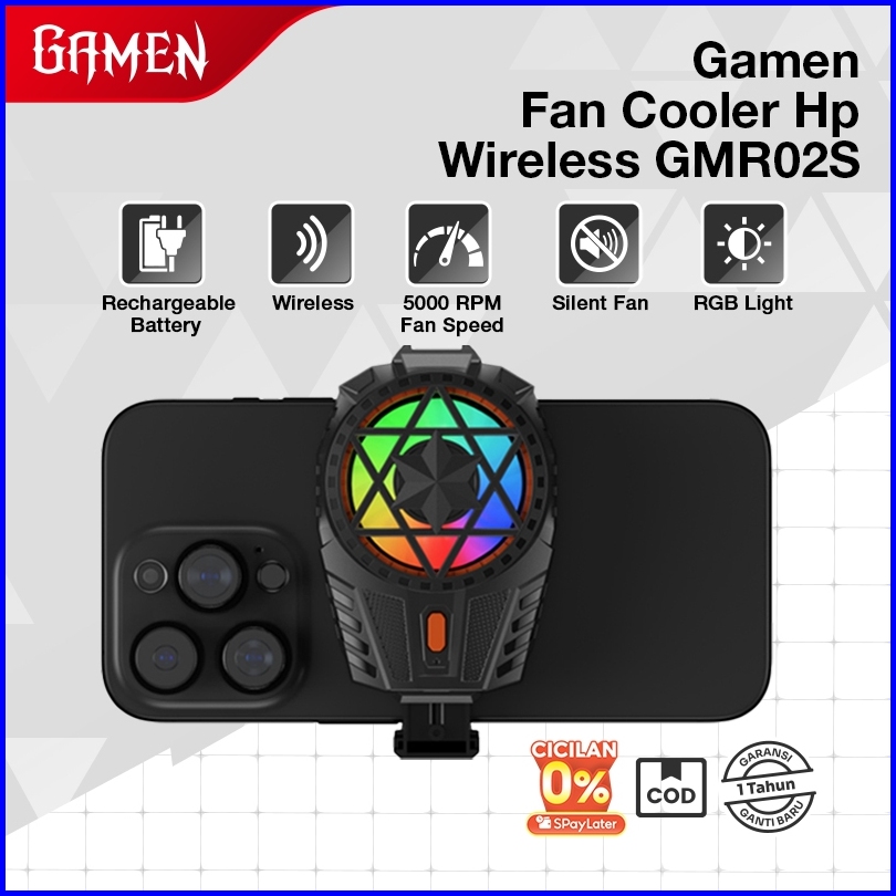 Gamen Wireless Rechargable Fan Cooler Hp Tanpa Kabel Rgb Light Gmr02s 5000 Rpm Silent Fan Super Fast Cooling Original -