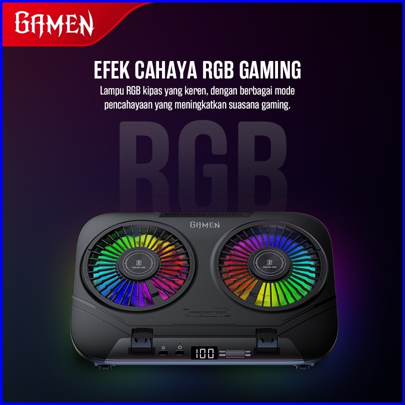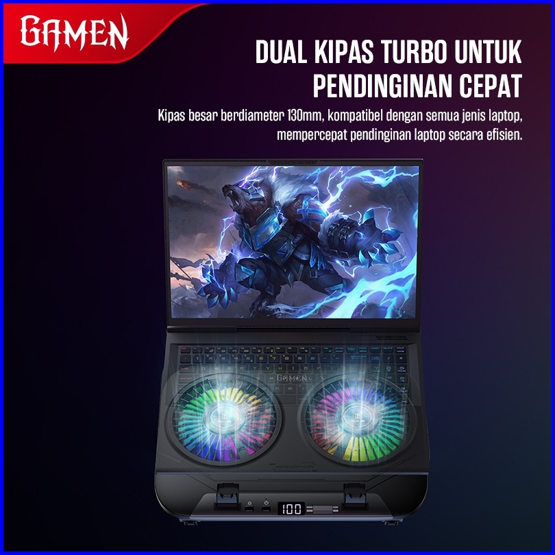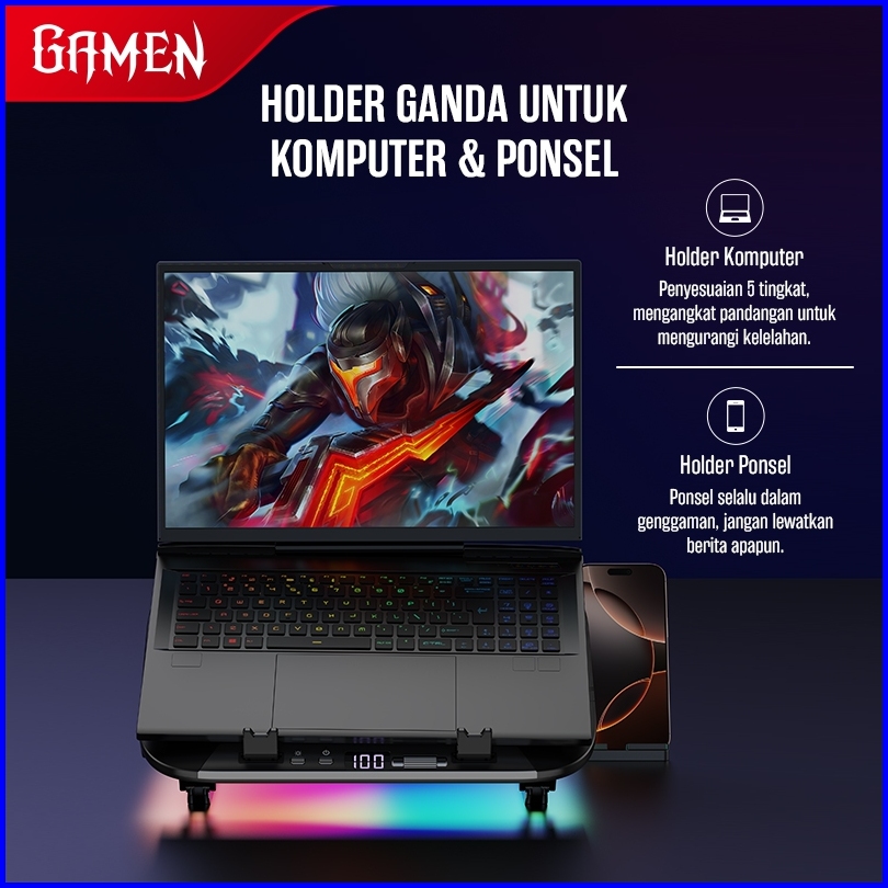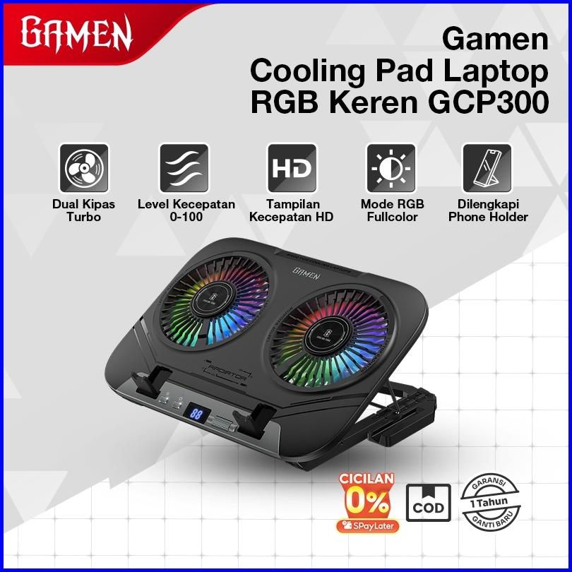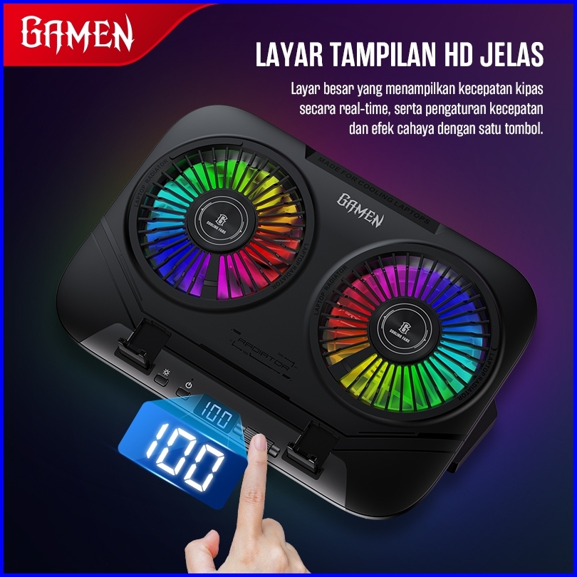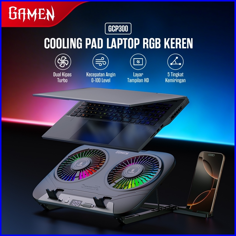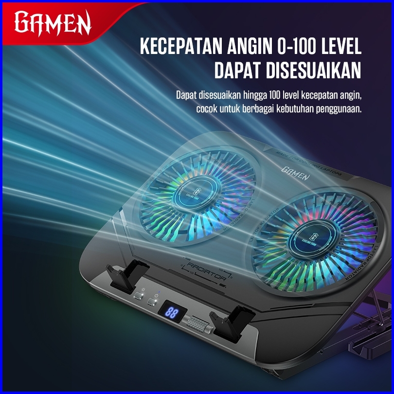 Gamen Laptop Gaming Cooling Pad Kipas 2 Inti 3900 Rpm 100 Level Fan Speed With Phone Holder Silent Fan Gcp300 Original -