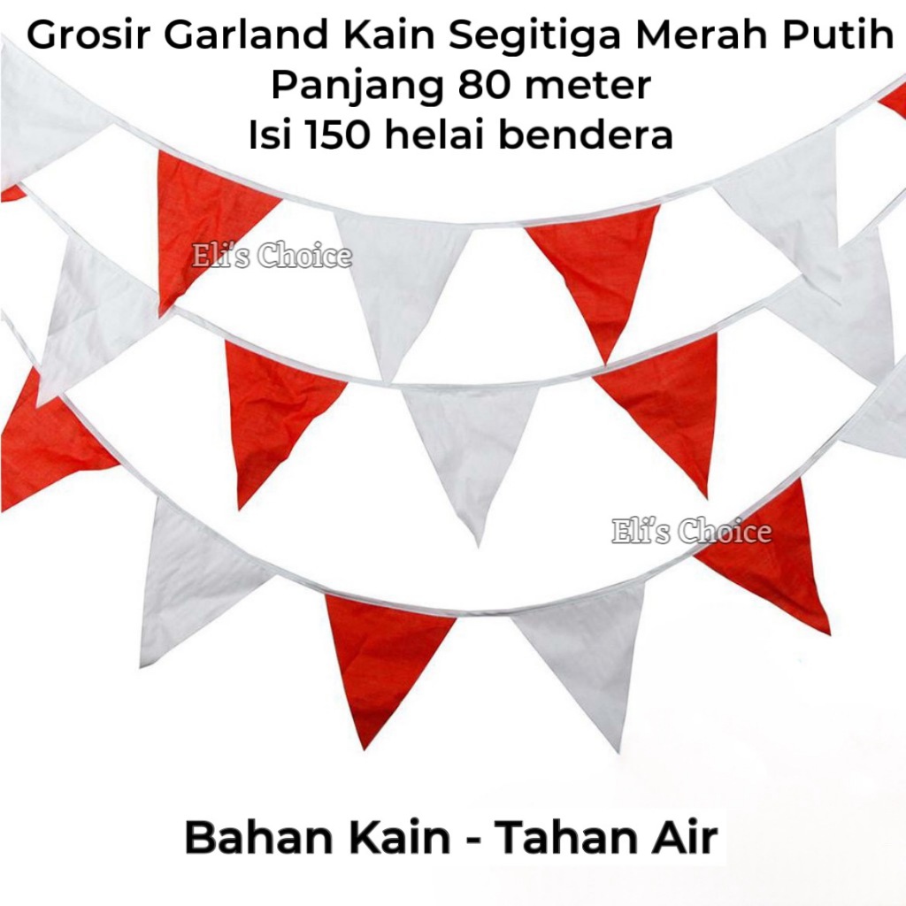 GROSiR Umbul Umbul Segitiga Merah Putih 80 METER Isi 150 PCS Bendera Bahan Kain Dekorasi 17 Agustus