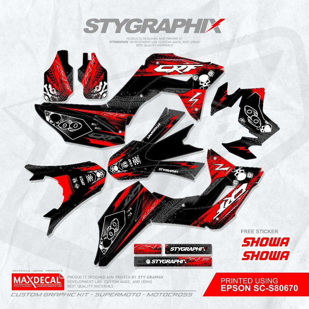Decal CRF150 L Full Body Hitam Merah Custom Nama Nomor Warna