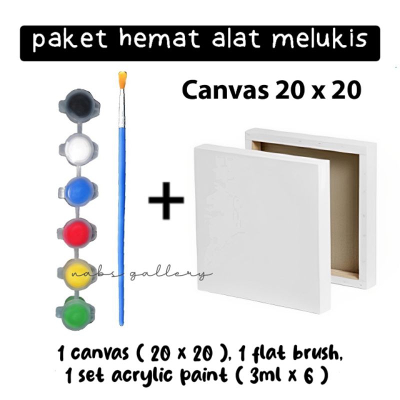nabs gallery - (PROMO) Paket Alat Lukis. kanvas 10x10 / 20x20 / 20x30 , 1 atau 2 kuas, 6 atau 12 warna cat akrilik. Pai