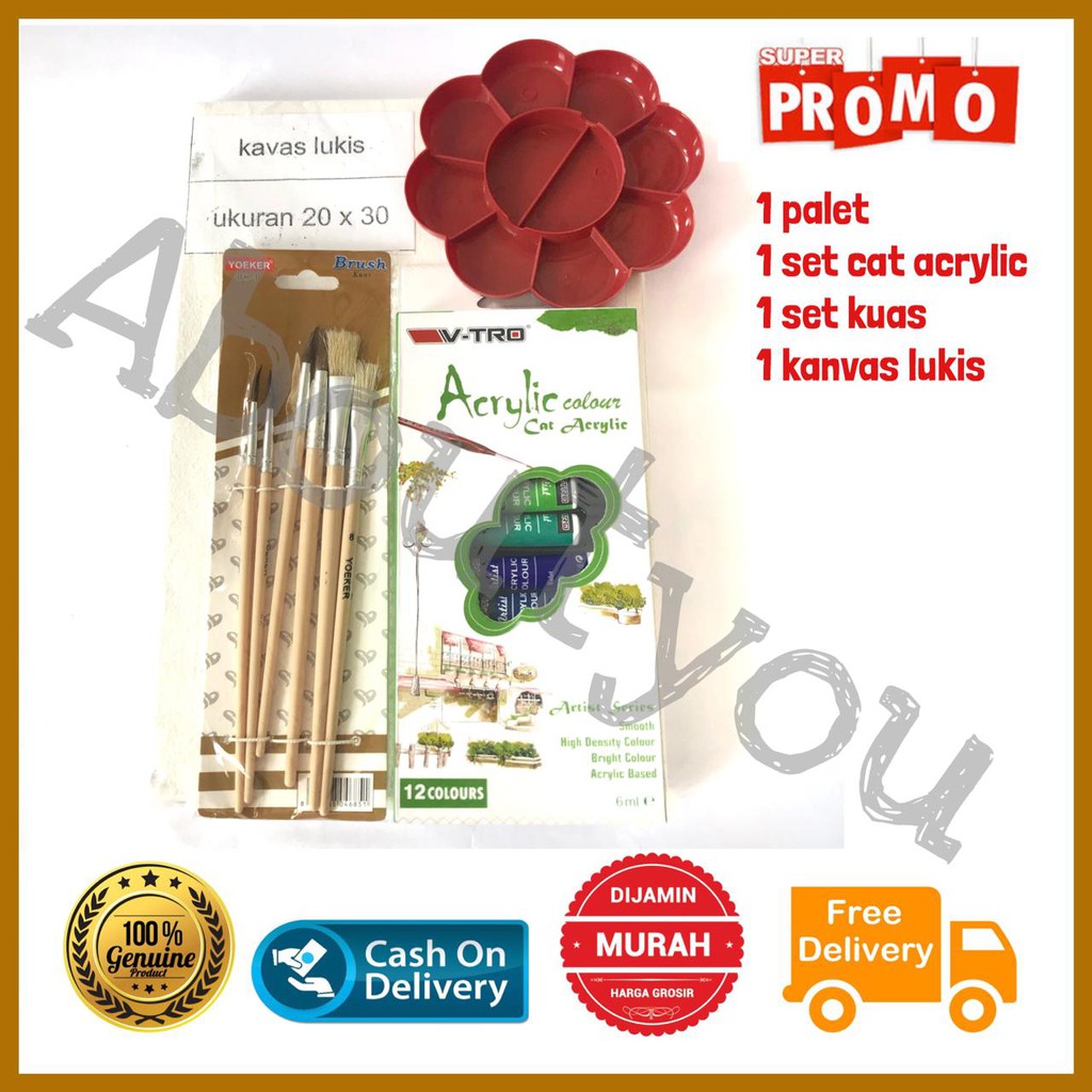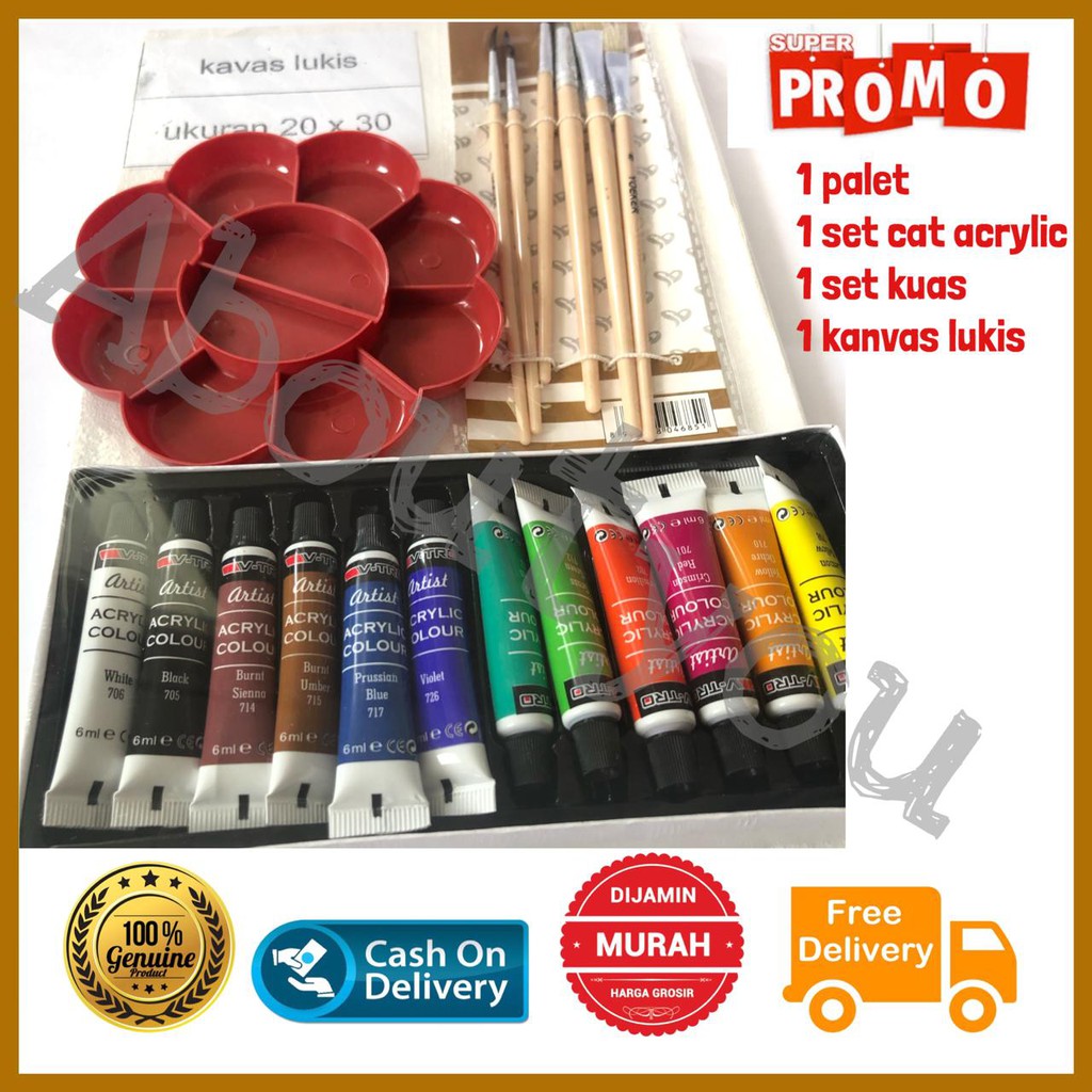 PAKET LUKIS KOMPLIT 4 in 1 KANVAS Besar Cat Akrilik Palet Kuas Set Melukis Lengkap