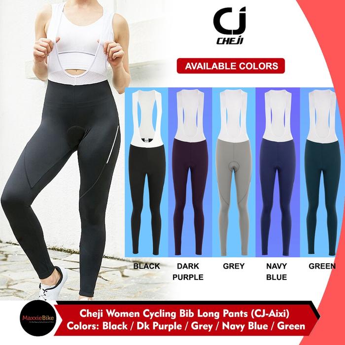 Cheji Original Bib Long Women Cycling - Celana Sepeda Padding Wanita Bib Panjang - Aixi Quick Dry - Black, S