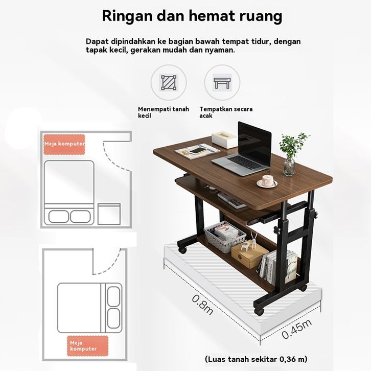 IH Meja Laptop Lipat Adjustable dengan Roda Meja Laptop Roda Meja Kerja Adjustable Meja Belajar Portable
