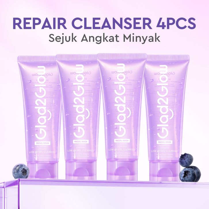 glad2glow pembersih gel bersinar gel cleanser dengan blueberry dan ceramide untuk kulit yang lebih cerah dan sehat