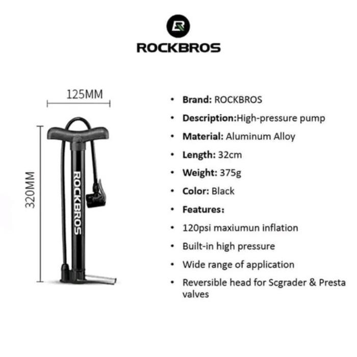 FLASH SALE ROCKBROS A320 POMPA SEPEDA 120PSI P3NTIL SCHRADER PRESTA BICYCLE PUMP OUTDOOR BLACK