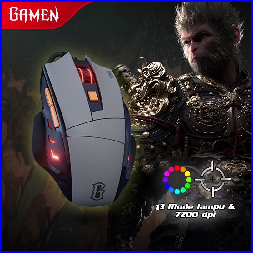 Gamen Mouse Gaming Kabel 7200 Dpi 6 Level Dpi 16.8 Juta Warna Rgb 13 Mode Rgb Gm300 Black Myth Wukong 6 Macro Button For