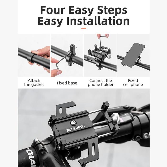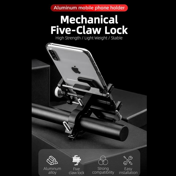 FLASH SALE ROCKBROS 699 HOLDER HANDPHONE TEMPAT HP SEPEDA ADJUSTABLE MOUNTING BRACKET BLACK RUBBER BLACK