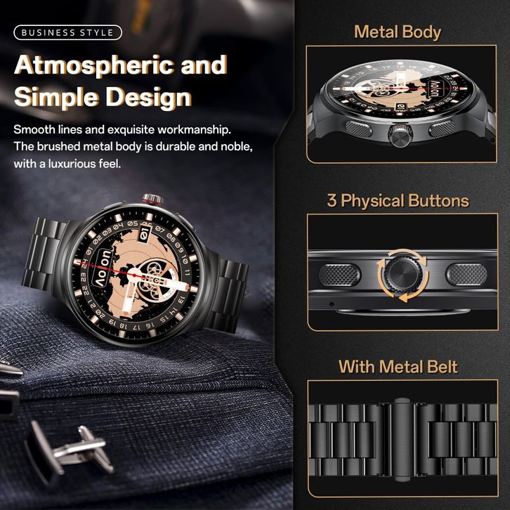 【AGPS】Aolon Prime 3 Jam Smartwatch Pria 46mm Amoled Cover Lock Metal Case Telepon Bluetooth Pengukuran Olahraga Smart