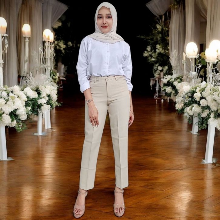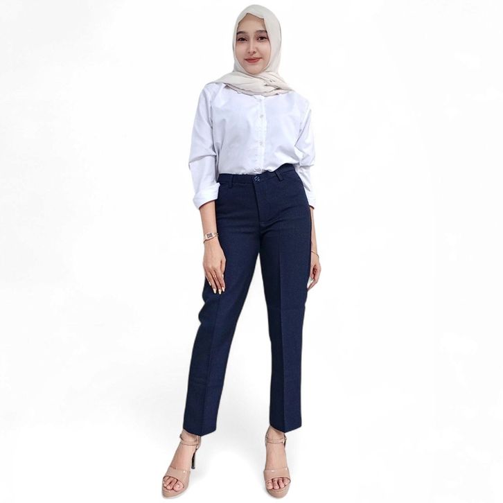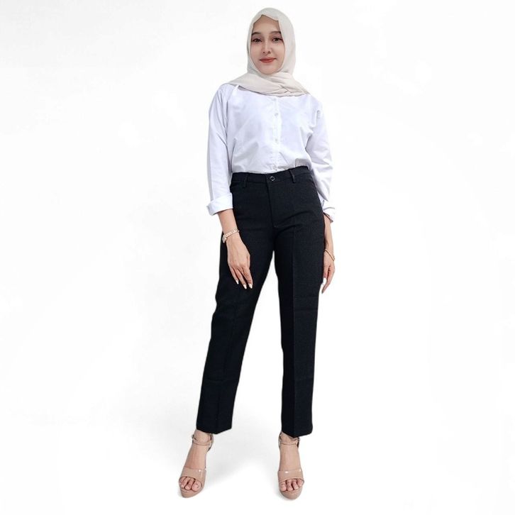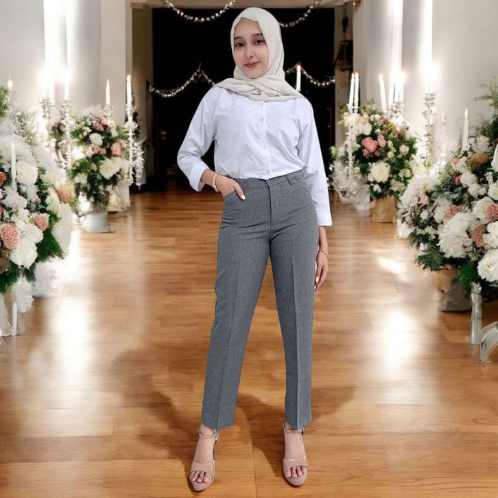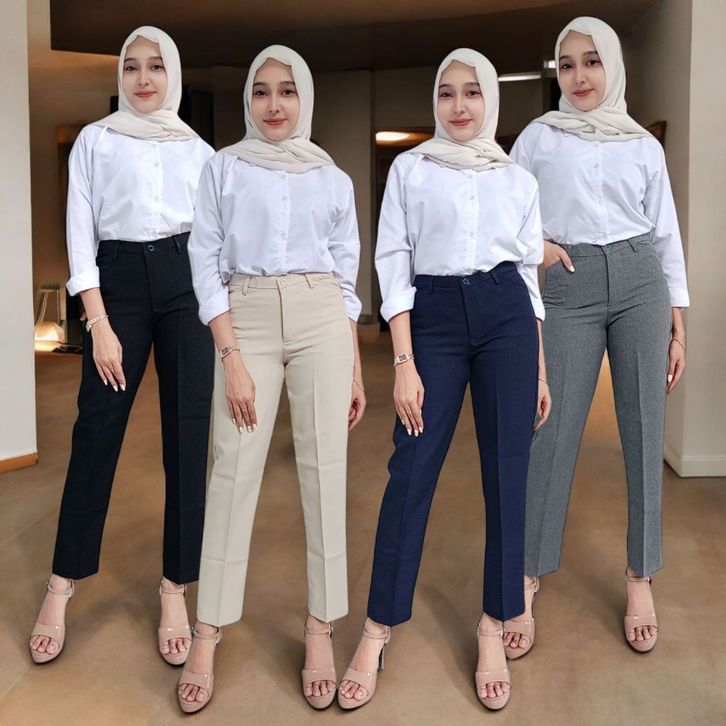 (Gratis Ongkir) CELANA BAHAN KANTORAN WANITA PINGGANG RESLETING WOLL SIZE S-5L JUMBO
