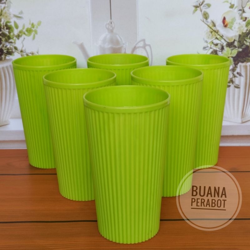 PROMO MURAH 1 LUSIN GELAS PLASTIK MOTIF BAMBU TAHAN AIR PANAS