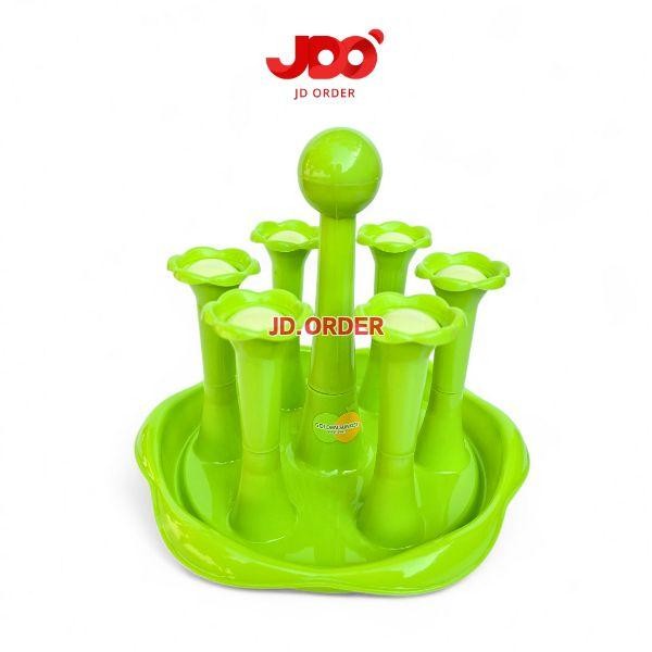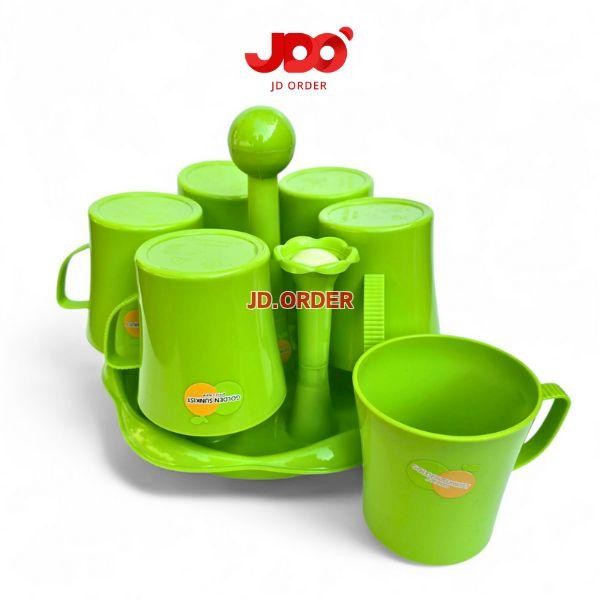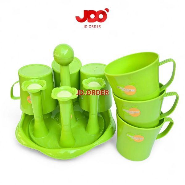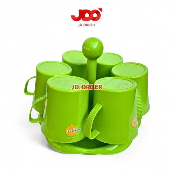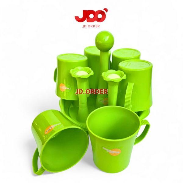 Set 6Pcs Cangkir Mug 300ml dan Stand Gelas Air Minum Plastik Hijau Golden Sunkist