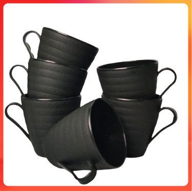 12 pcs Cangkir Lusinan Gelas Cangkir Kopi Jadul Kecil Hitam set 12 pcs Cangkir Teh Plastik Ulir Doft
