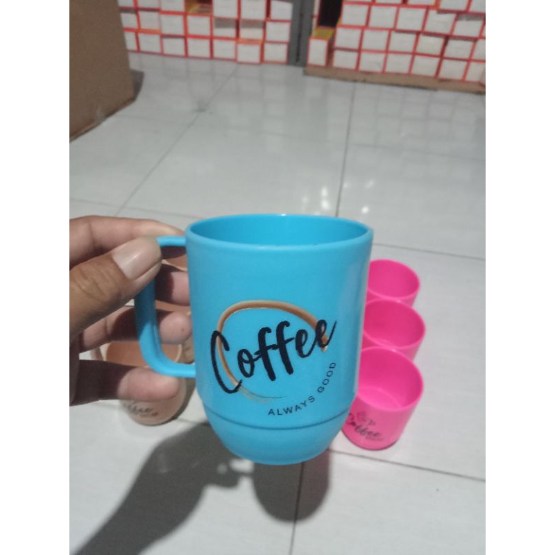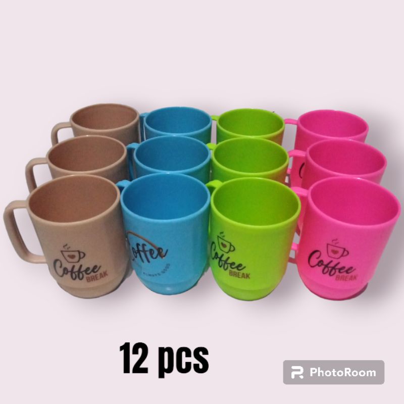 12 pcs cangkir kopi 350 ml plastik tebal warna-warni sunrise food grade