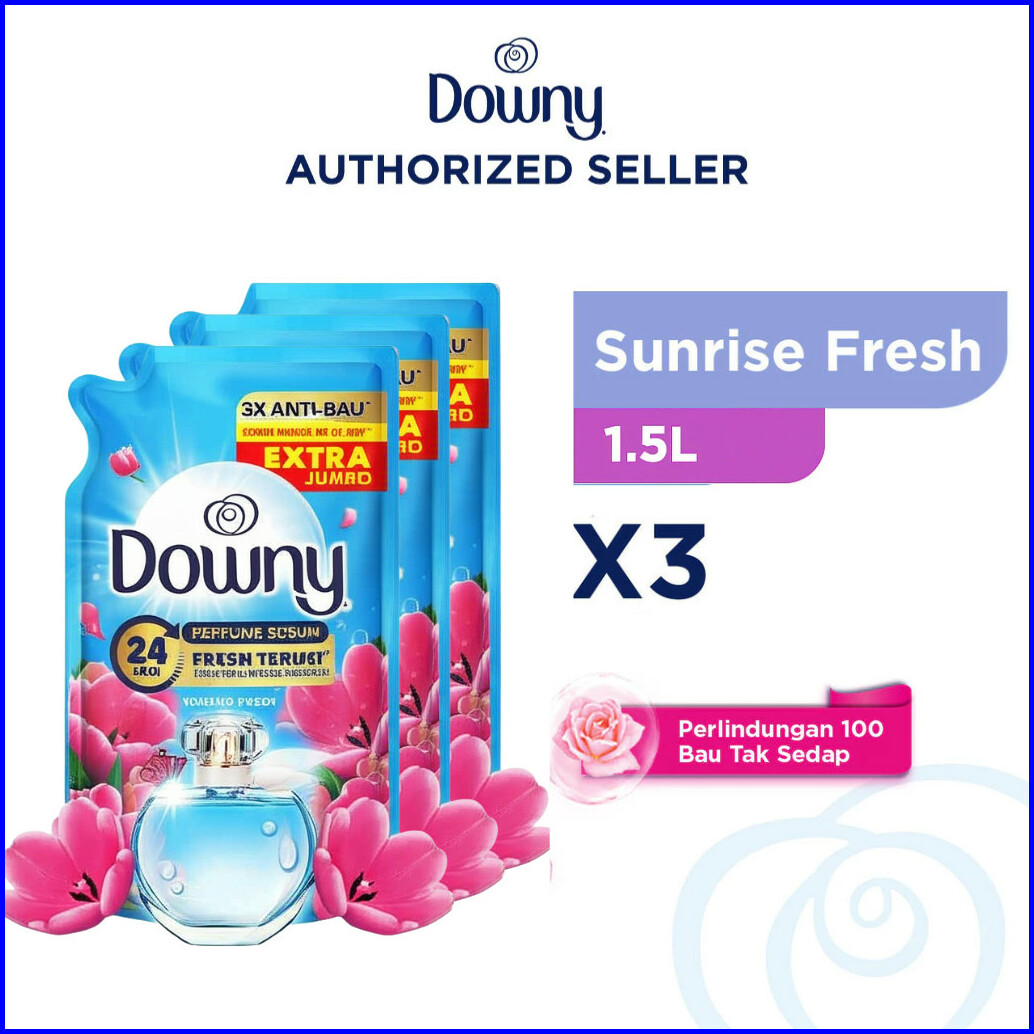 Downy Sunrise Fresh Pewangi Pelembut Pakaian Refill 1.5 L - Isi 3