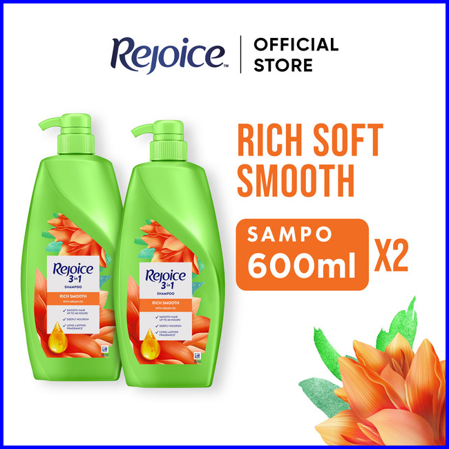 Rejoice Sampo Rich Halus Lembut Argan Perawatan Rambut 600ml X2 Rejoice Shampoo