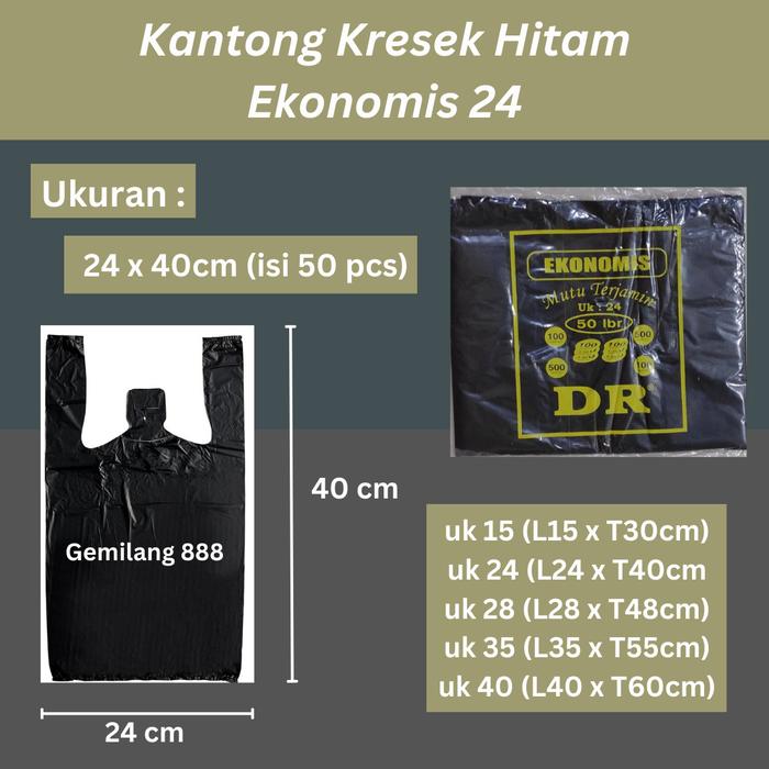 DP 0 EKO 24 KANTONG PLASTIK KANTONG KRESEK HITAM TIPIS SEDANG