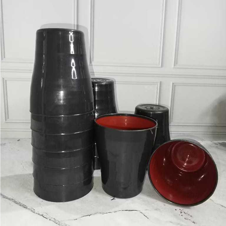 (12pcs/6pcs) Gelas Ramen Ulir Gelas Plastik Aesthetic Ramen Warna Merah Hitam Gelas Ramen Jepang