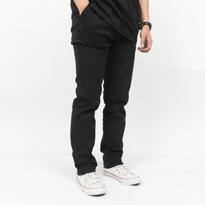 FLASH SALE HOOLIGANS LONG CHINO FABIO 211 BLACK CELANA PANJANG PRIA SLIM TWILL STRETCH CASUAL 28, HITAM