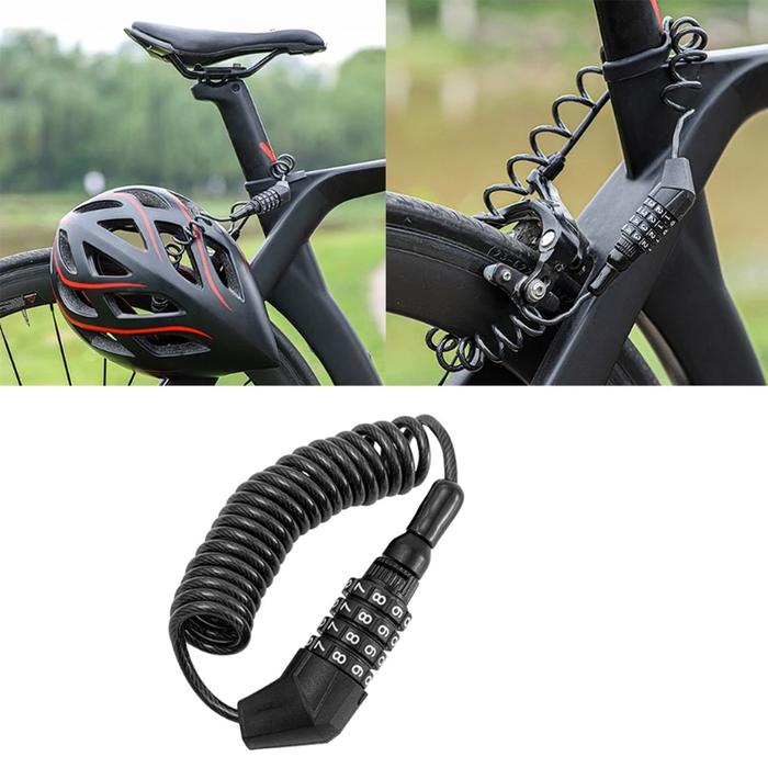 FLASH SALE ROCKBROS T530 KUNCI GEMBOK SEPEDA HELM KOMBINASI 4 ANGKA SPIRAL KEY LOCK HELMET BIKE PORTABLE BLACK