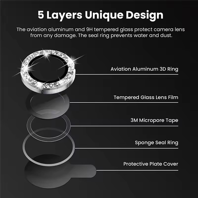 3 PCS Glitter Kamera Protector for Samsung A55 A35 5G A16 A15 A56 A36 5G A54 A34 A14 Camera Protector with Tempered Kaca