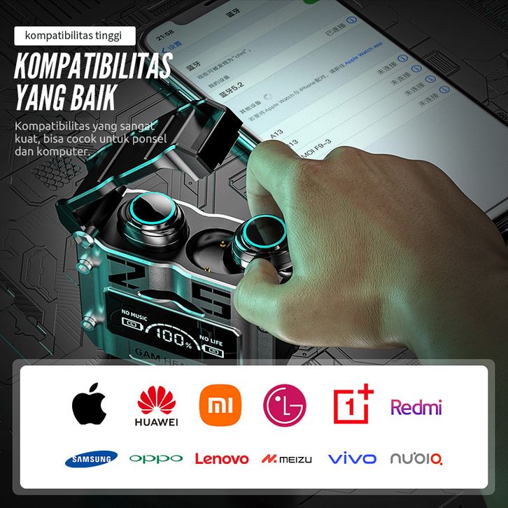 NEWM25 Wireless Bluetooth Headphones TWS 5.3 Low Latency In-Ear Noise Reduction Headset LED Mic Earbud Stereo Sports G