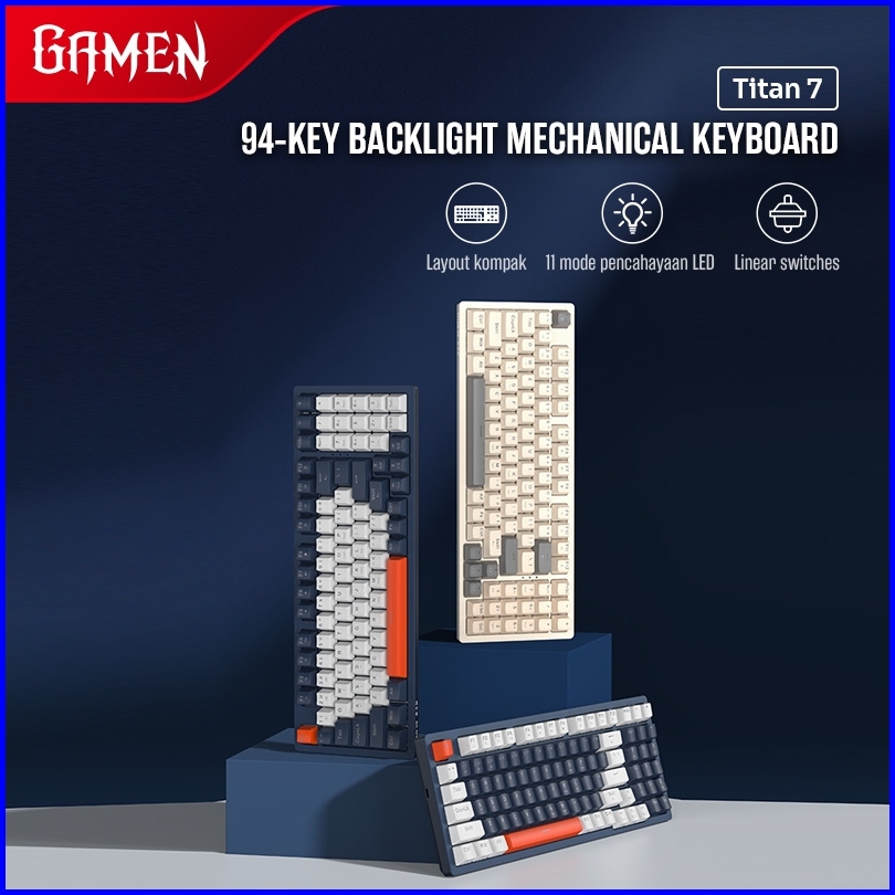 Gamen Keyboard Gaming Mechanical Linear Switch 94 Keys Rgb Light Titan 7 Original - Garansi 1 Tahun