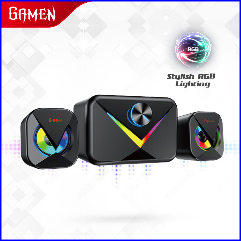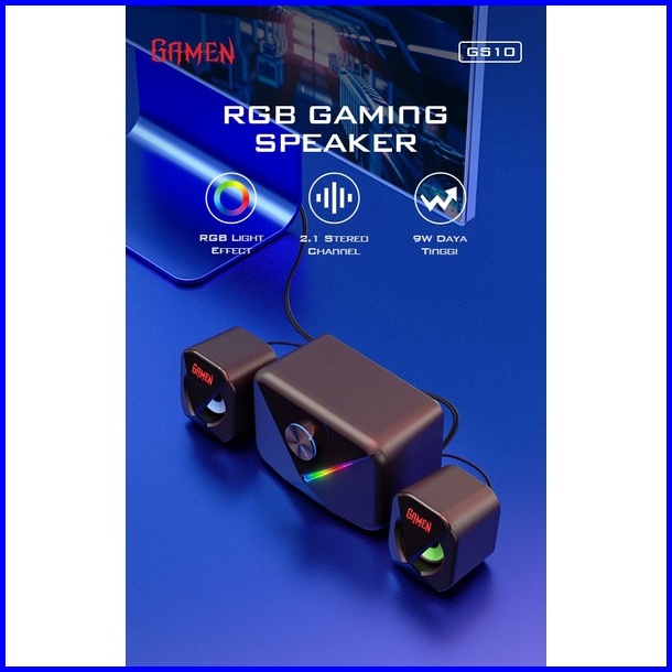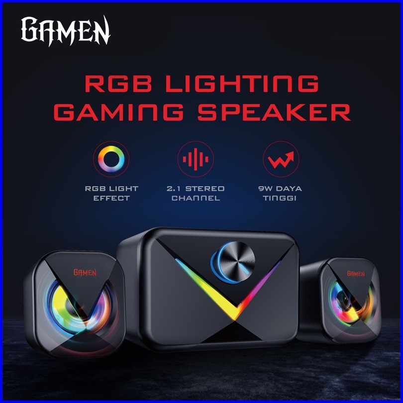 Gamen Speaker Laptop Gaming Kabel Usb Aux 3.5mm Rgb Light 2.1 Stereo Channel Gs10 9w Speaker Komputer Speaker Bass Origi