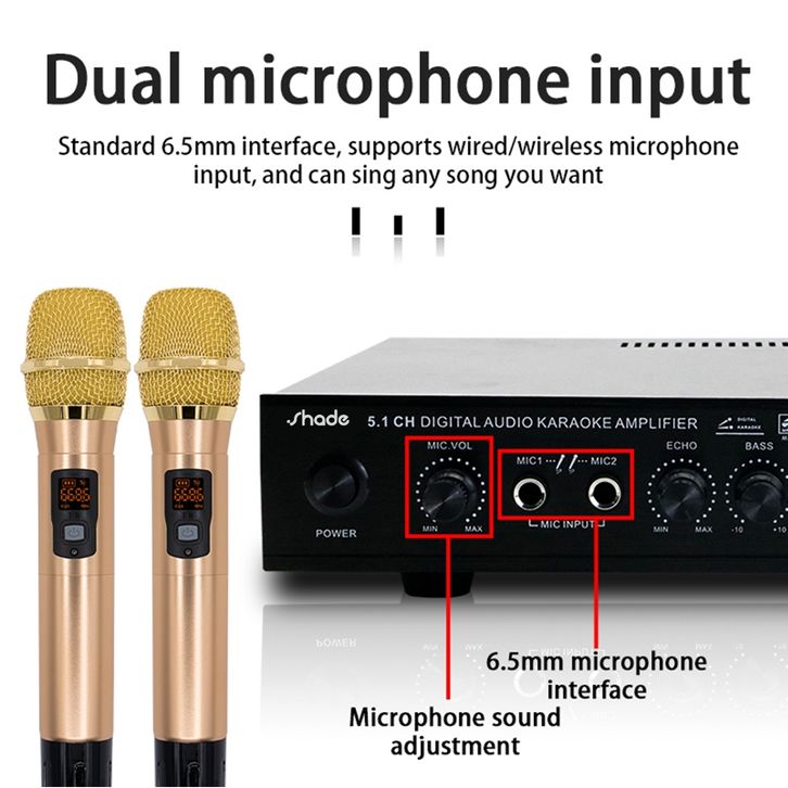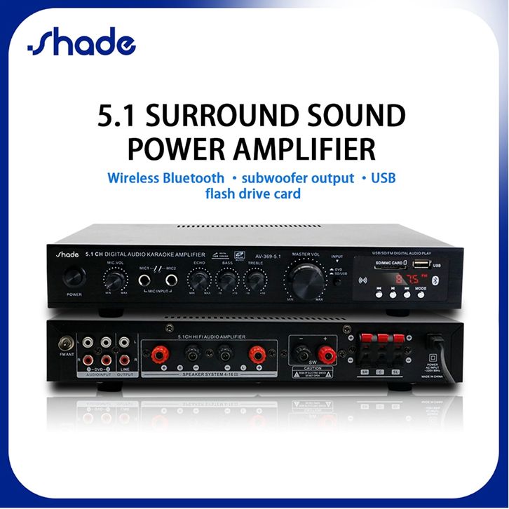 Shade Power Amplifier 5.1 Channel Surround Sound | Bluetooth, USB, SD, Karaoke, Subwoofer Out