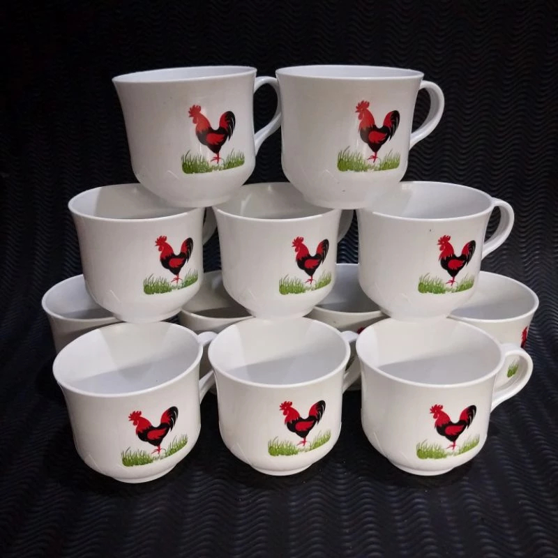 12 Pcs Cangkir Ayam Jago Plastik Tahan Panas / Gelas Mug Pelastik Food Grade