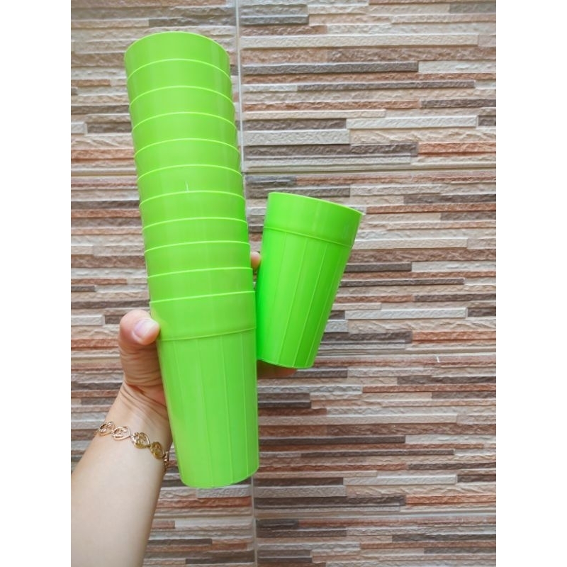 isi 12pc GELAS PLASTIK KWALITAS BGS TEBAL WARNA CANTIK UK 350ML