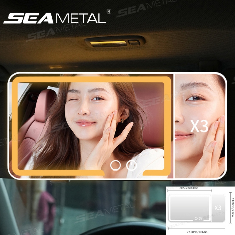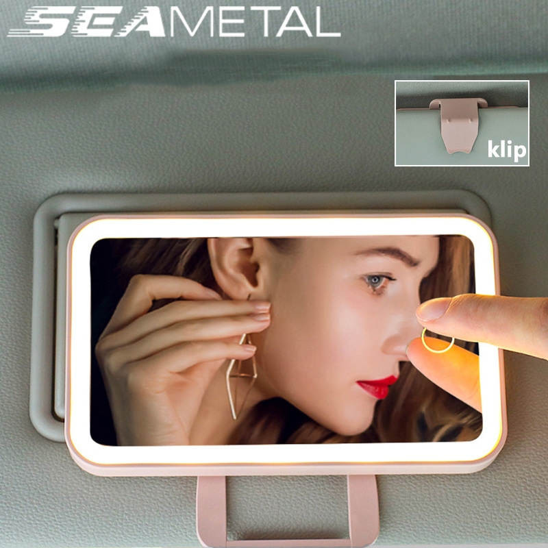 SEAMETAL Cermin Makeup Dengan Lampu Mobil Led Layar Sentuh Dapat Disesuaikan Untuk Sun Visor Mobil