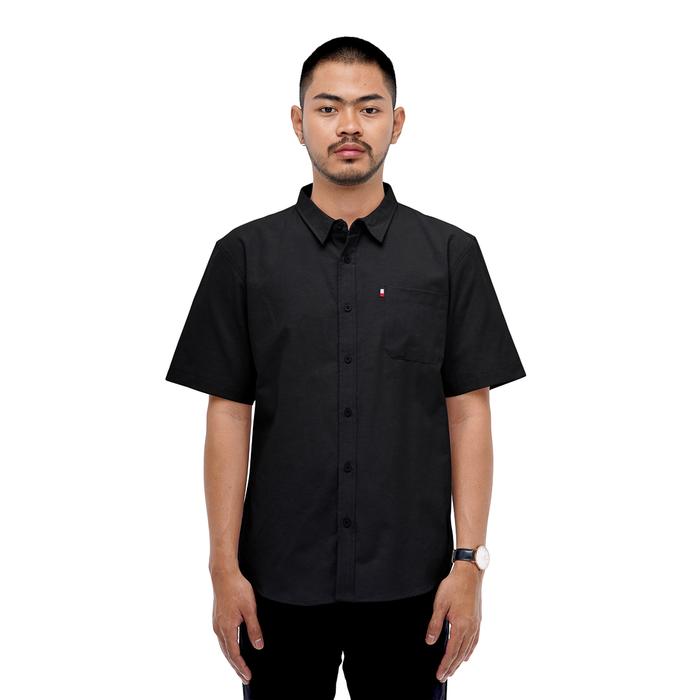 FLASH SALE HOOLIGANS KEMEJA SS SHEARER BLACK FORMAL HITAM LENGAN PENDEK BASIC PRIA CASUAL NYAMAN XL