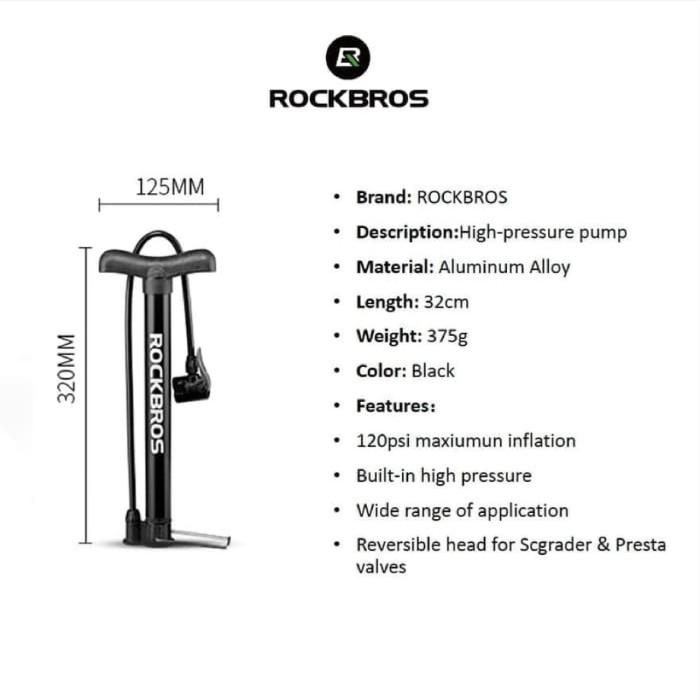 FLASH SALE ROCKBROS POMPA SEPEDA 120 PSI A320 BICYCLE PUMP BOLA MOTOR PRESTA SCHRADER ALUMINIUM ALLOY PORTABLE BLACK