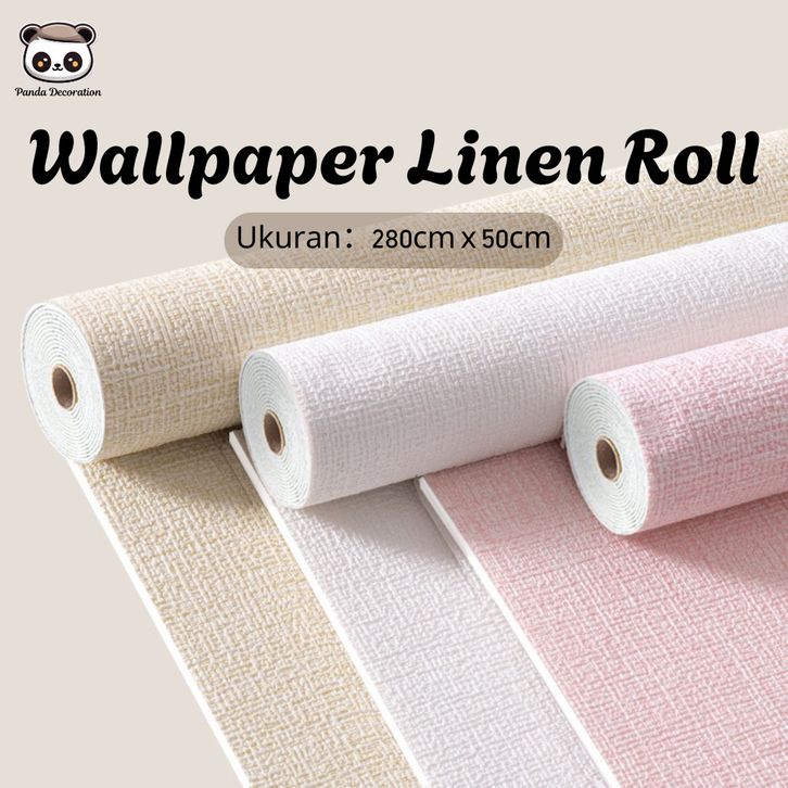 BARU Wallpaper Linen Roll 50cm 280cm / Wallstiker Embos Dekorasi Dinding Polos 3D Premium adobg