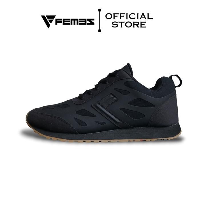 Original Femez Lite Berlin Sepatu Casual Pria Big Size Jumbo 39-48 Full Hitam Black Karet Sepatu Sekolah Hitam Polos S