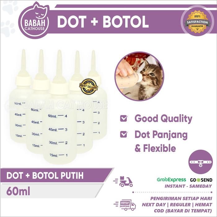 DOT BOTOL KUCING PUTIH 60ml Susu untuk Anak Bayi Kitten Anjing Murah - Pentil PENDEK