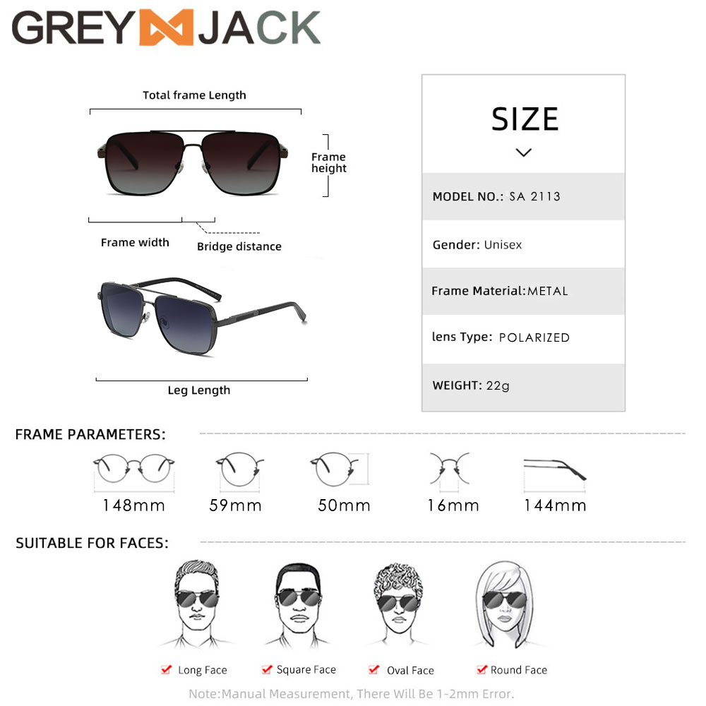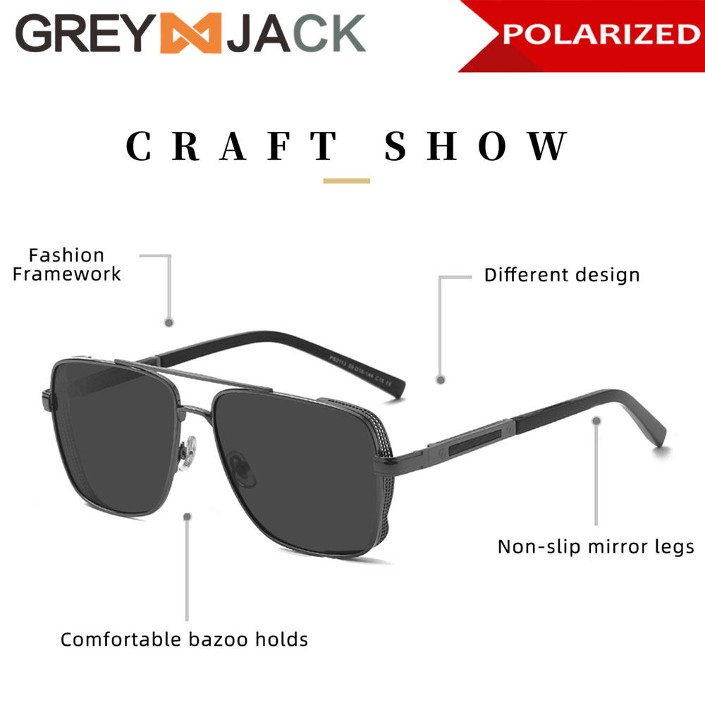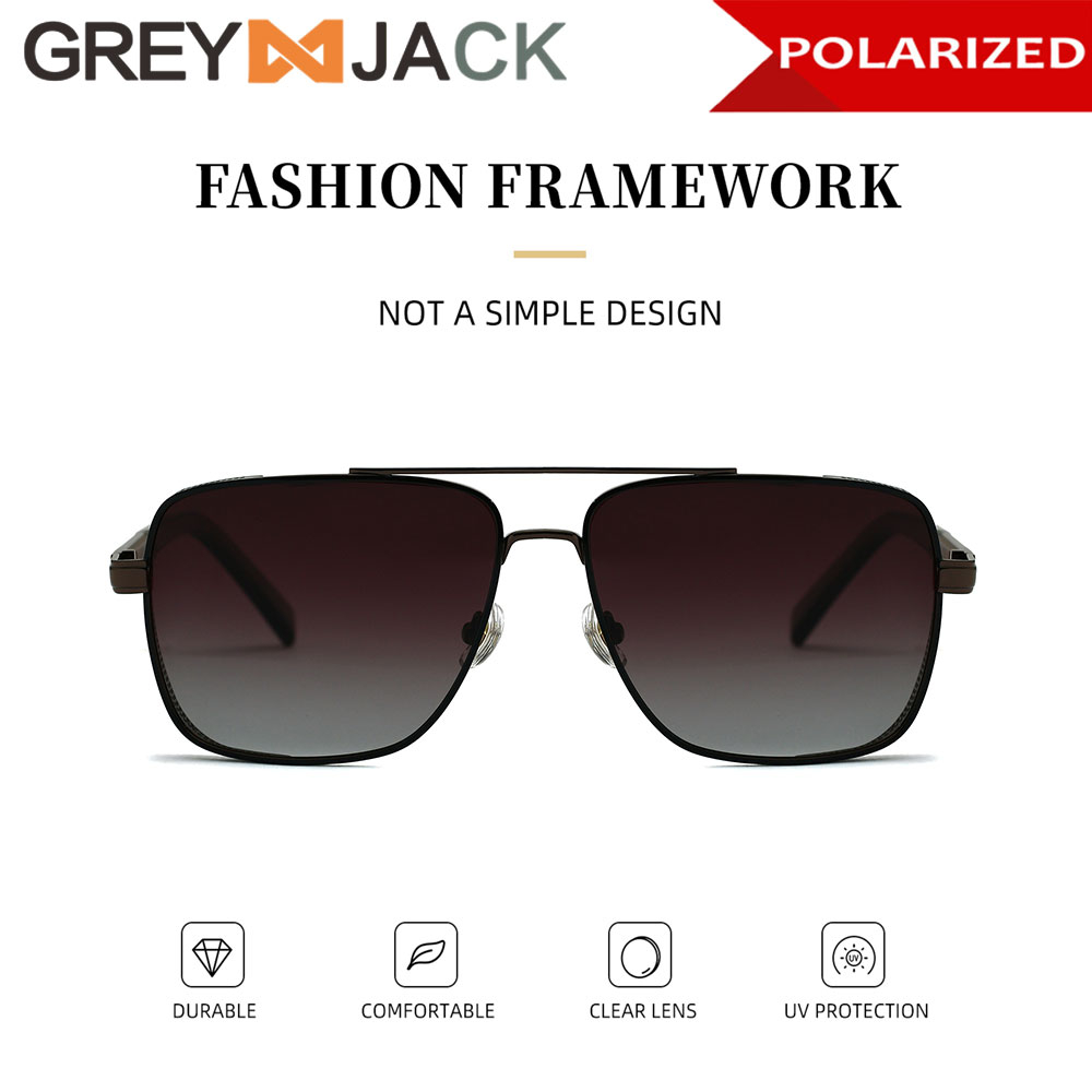 Grey Jack Kacamata Hitam Sunglasses Polarized Anti Silau UV400 Model Aviator Kotak Keren Bahan Metal Fashion Laki-laki 2