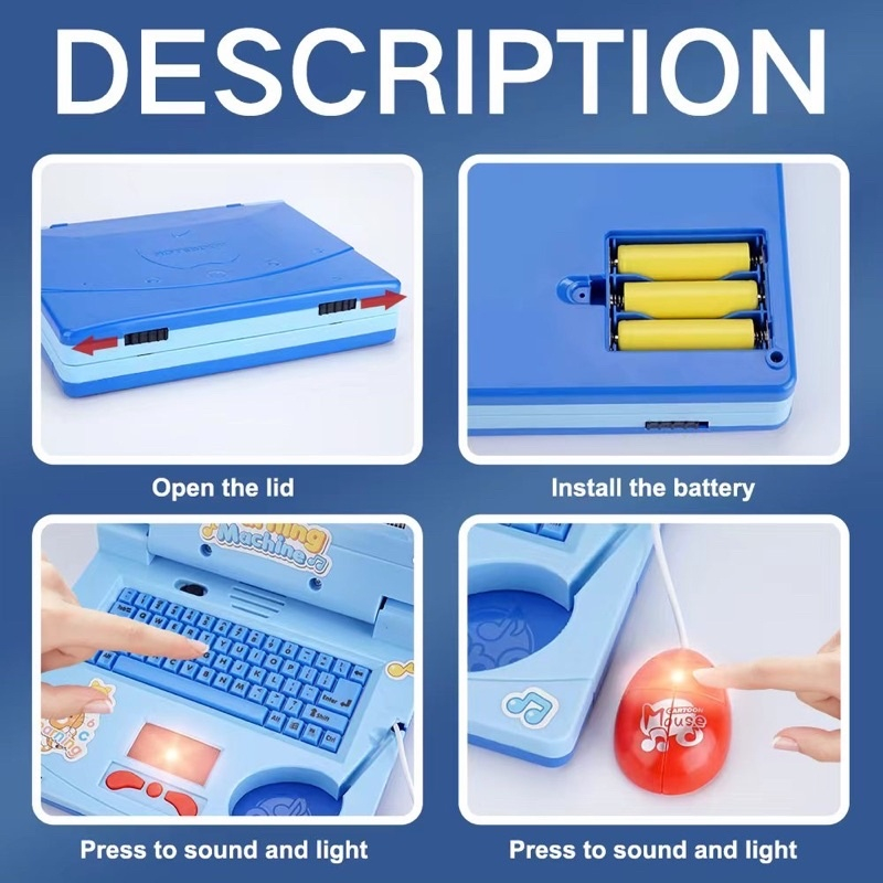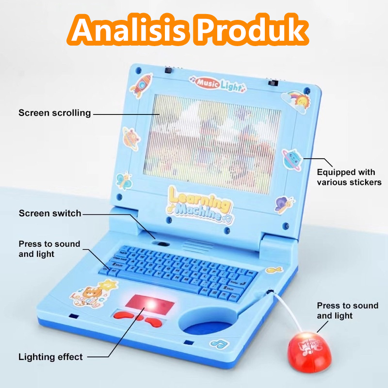 MAINAN LAPTOP ANAK PEREMPUAN MAINAN LEARNING MACHINE NOTEBOOK MAINAN EDUKASI ANAK DENGAN LAMPU MUSIK