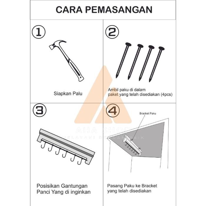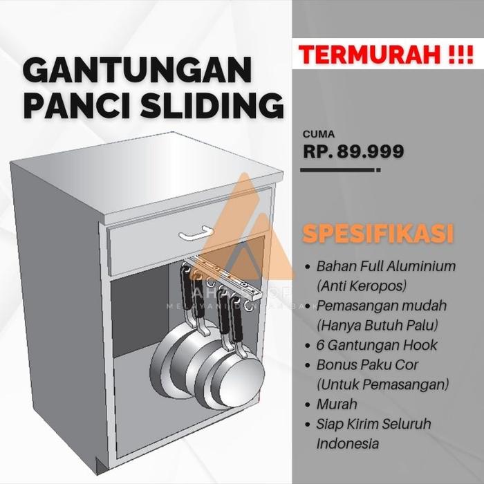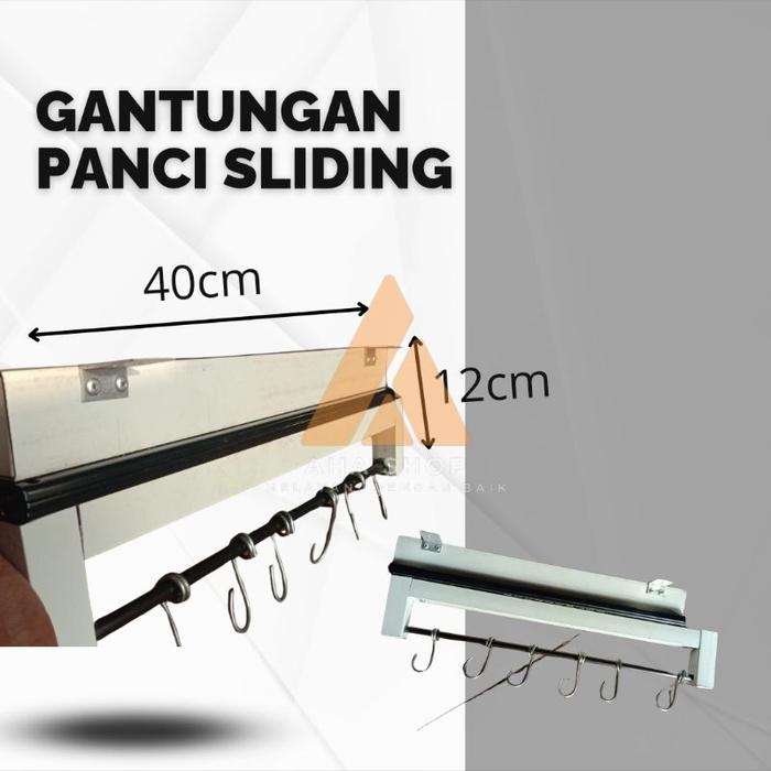 TERLARIS GANTUNGAN PANCI TARIK DORONG 40CM SLEDING PERALATAN DAPUR 6 HOOK HANDMADE 100 PERSEN ORI ALUMINIUM PUTIH